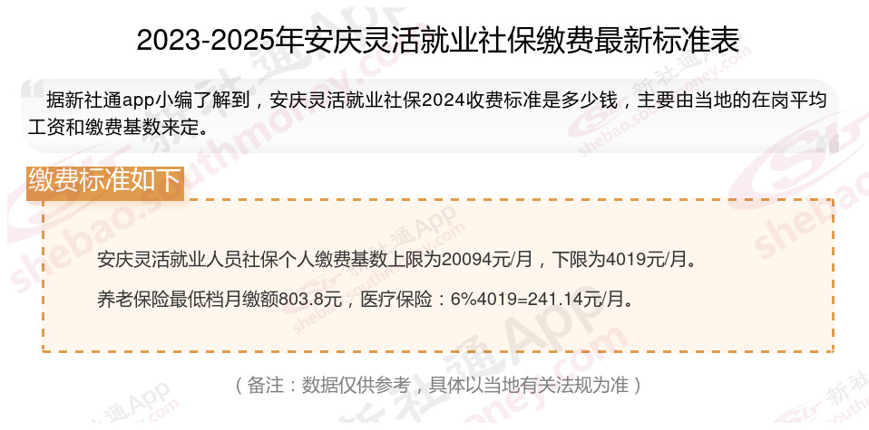 一、2025年安庆灵活就业社保缴费标准表 安庆灵活就业社保多少钱一个月?