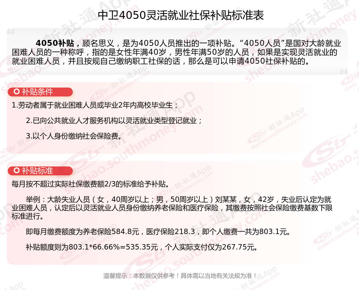 一、2025年中卫4050社保补贴标准是怎么样的?中卫4050一年可拿多少钱?