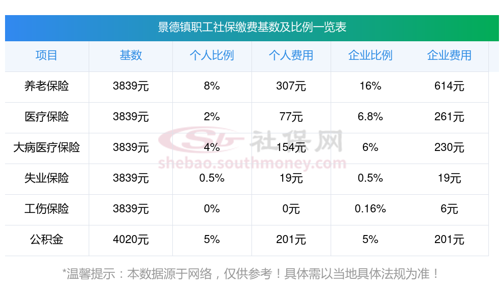2025年景德镇社保缴费多少钱?下表是2023-2024年景德镇社保费用明细参考,新社通app-社保缴费查询工具提供的最新数据如下: