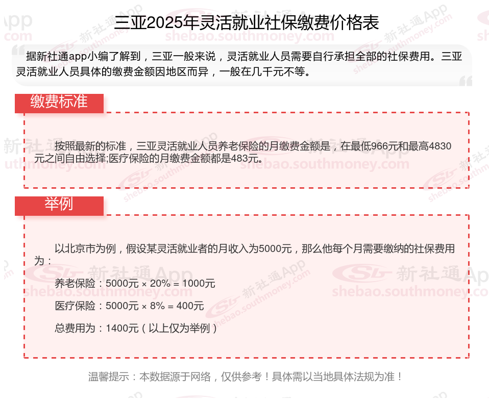 2025年三亚灵活就业人员社保需要交多少钱?随着经济社会的不断发展,灵活就业群体也日益壮大,其社保缴费问题也愈发受到关注。接下来随新社通APP小编一起来看看灵活就业群体社保缴费问题吧。
