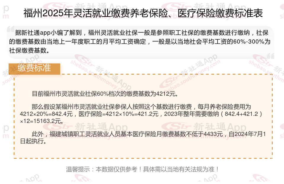 二、福州2025年灵活就业社保缴费基数及比例最新消息