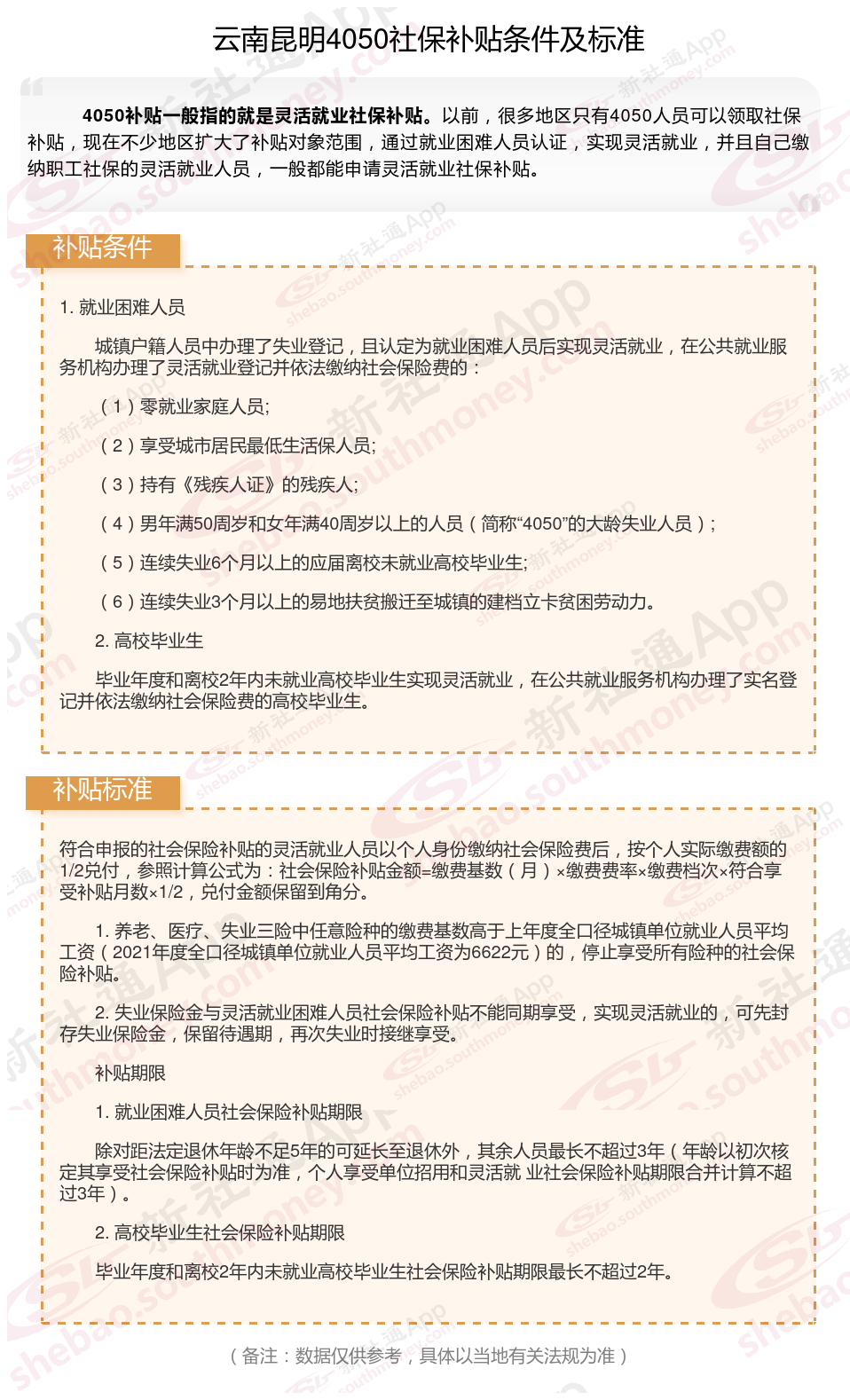 以上就是云南昆明4050灵活就业社保补贴的相关内容,欢迎关注新社通/下载新社通APP了解更多五险一金专业资讯。