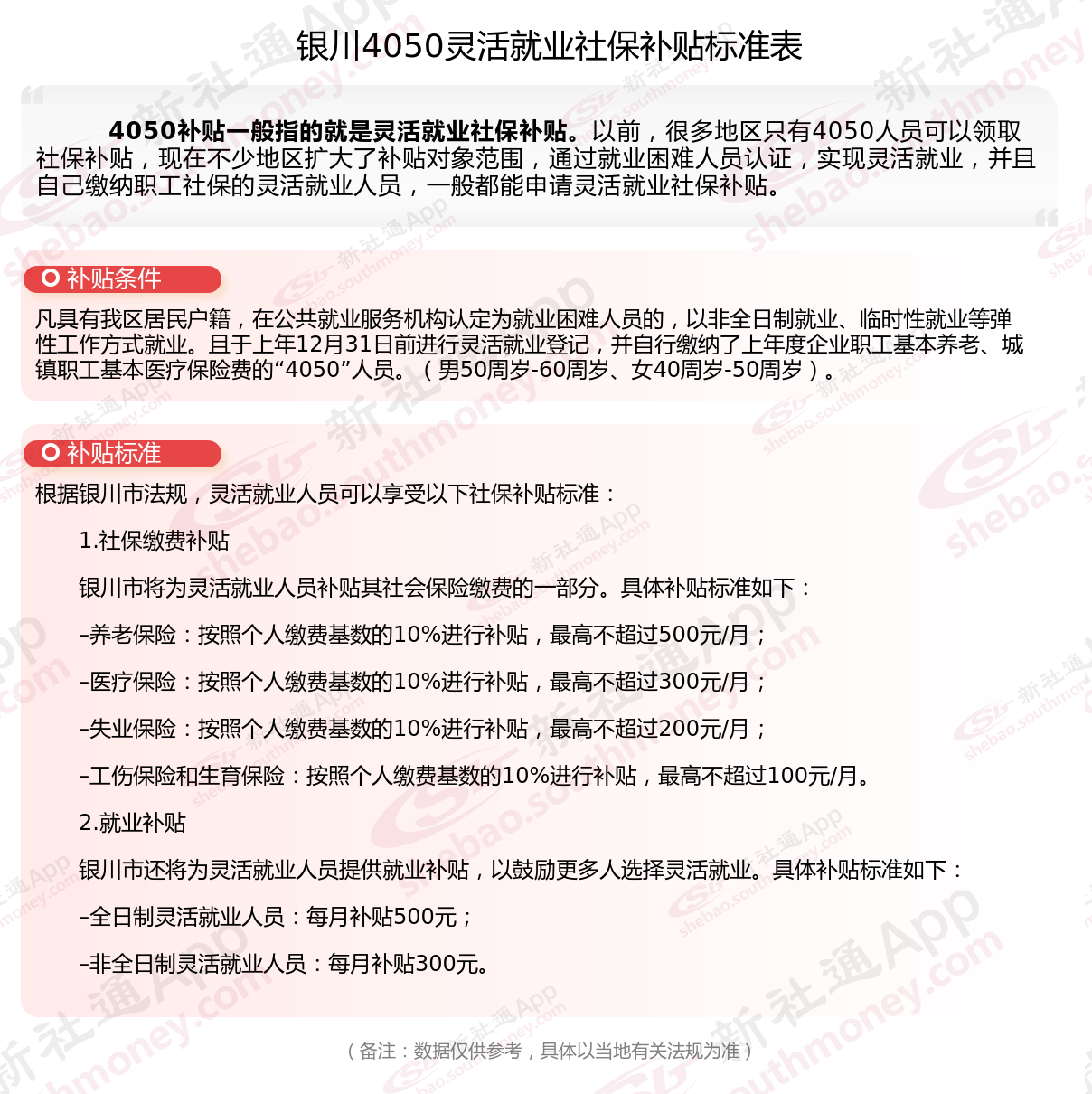 一、2025年银川灵活就业4050社保补贴标准最新是多少?