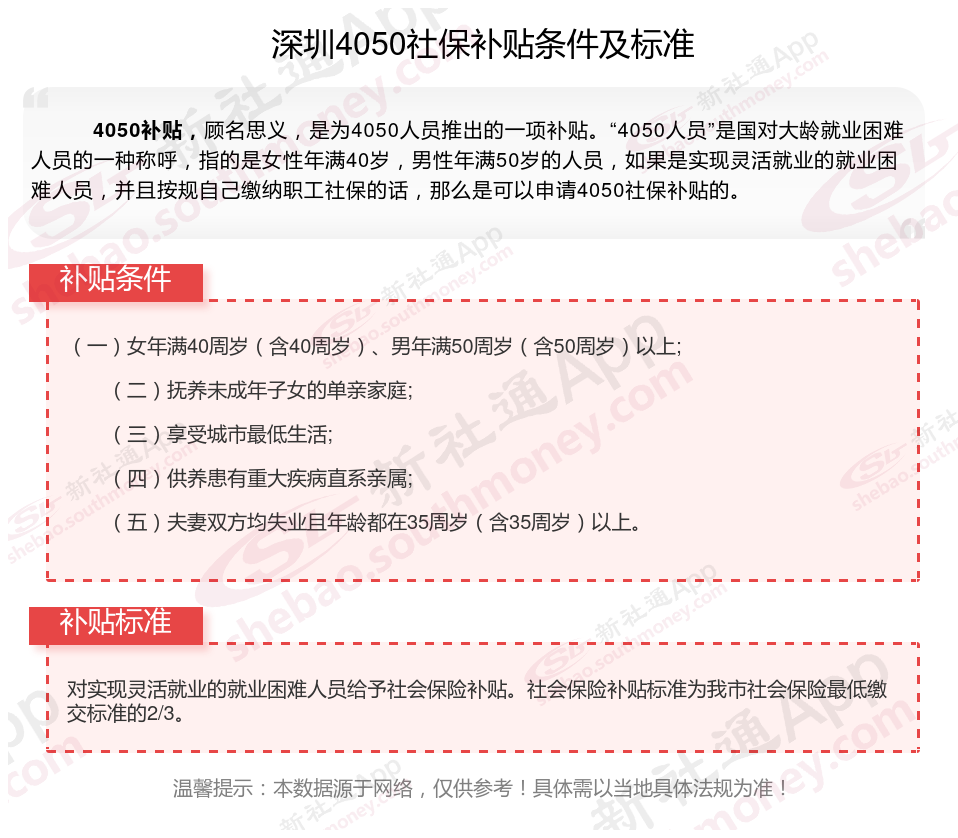 深圳4050灵活就业社保补贴标准如何?“4050补贴”主要是针对大龄就业困难人群的社保补贴,申请条件包括年龄、就业困难、灵活就业并自费缴纳社保,需要持有失业登记证,不同地区可能有细微差别,比如农村户口的限制。那么深圳4050灵活就业社保补贴标准是多少钱?深圳4050社保补贴条件是什么?接下来随新社通APP小编了解一下深圳4050灵活就业社保补贴标准最新资讯。