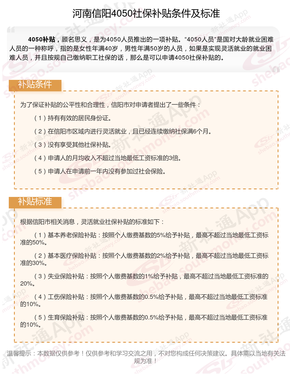 1、河南信阳4050社保补贴申请条件