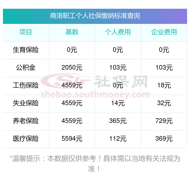2025年商洛社保缴费多少钱?下表是2024-2025年商洛社保费用明细参考,新社通app-社保缴费查询工具提供的最新数据如下: