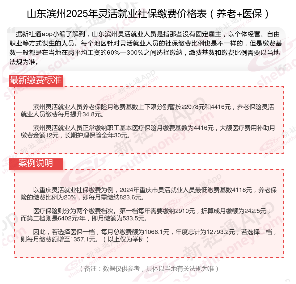 一、2025年山东滨州灵活就业社保缴费标准表 山东滨州灵活就业社保多少钱一个月?