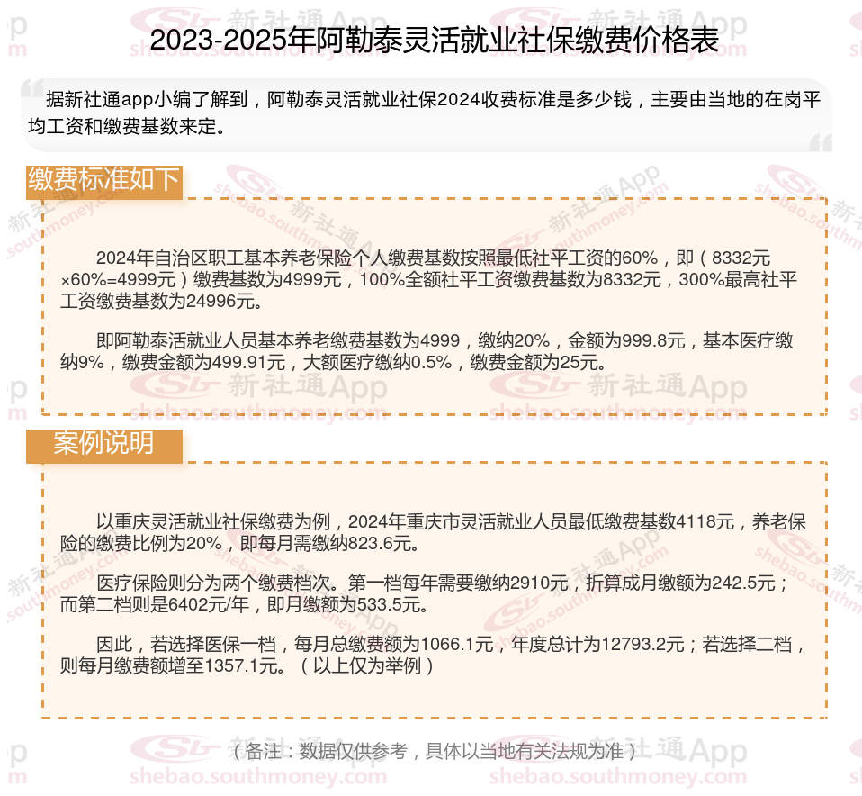 以上就是阿勒泰灵活就业社保缴费的全部内容,数据及内容供参考!希望对你有帮助,欢迎关注新社通解锁更多社保专业资讯。