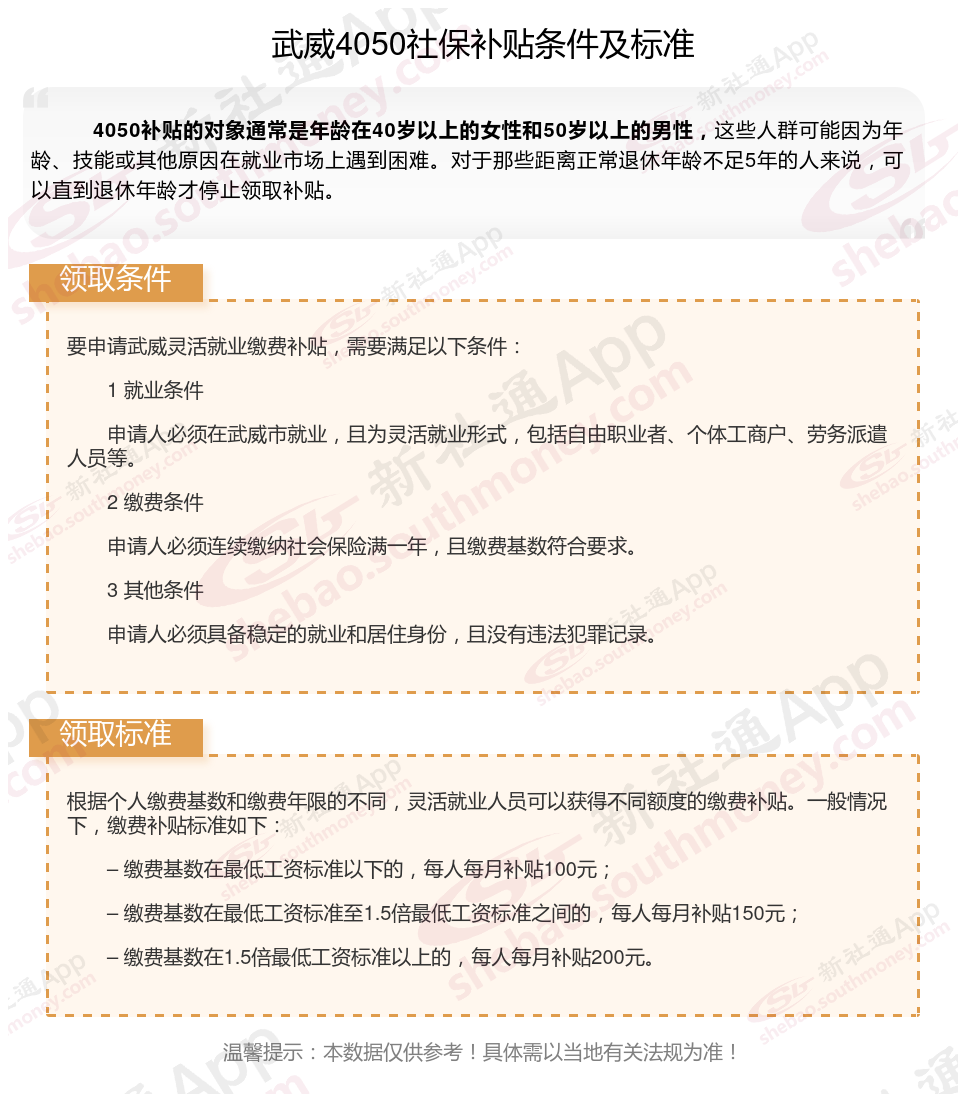 2025武威4050补贴主要针对的是年龄在40岁以上的女性和50岁以上的男性,这些人群通常因为年龄较大而面临就业困难。