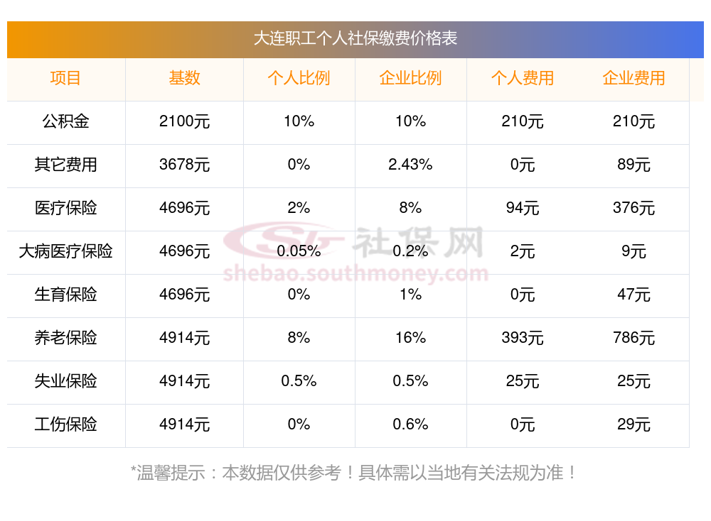 2025年大连社保缴费多少钱?下表是2024-2025年大连社保费用明细参考,新社通app-社保缴费查询工具提供的最新数据如下: