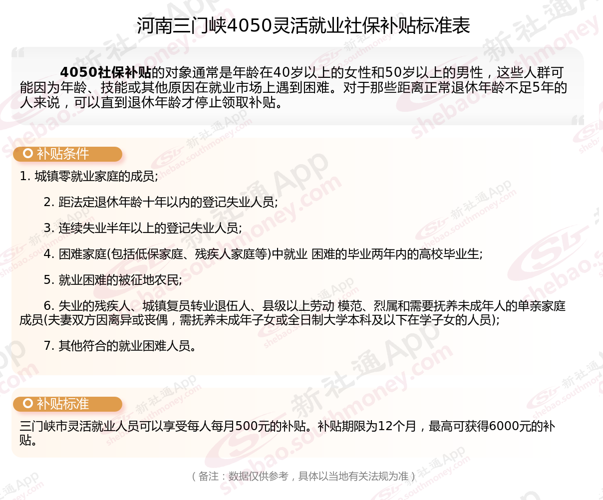 以上就是河南三门峡4050灵活就业社保补贴的相关内容,欢迎关注新社通/下载新社通APP了解更多五险一金专业资讯。