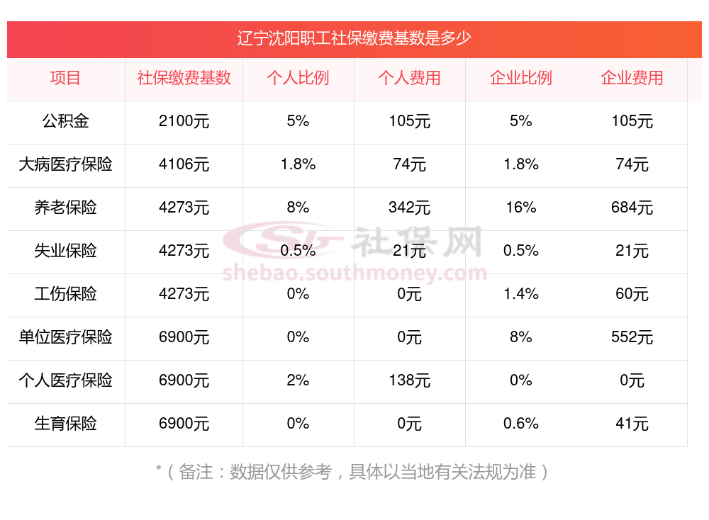 辽宁沈阳社保缴纳比例由企业和个人共同承担,具体比例如下: