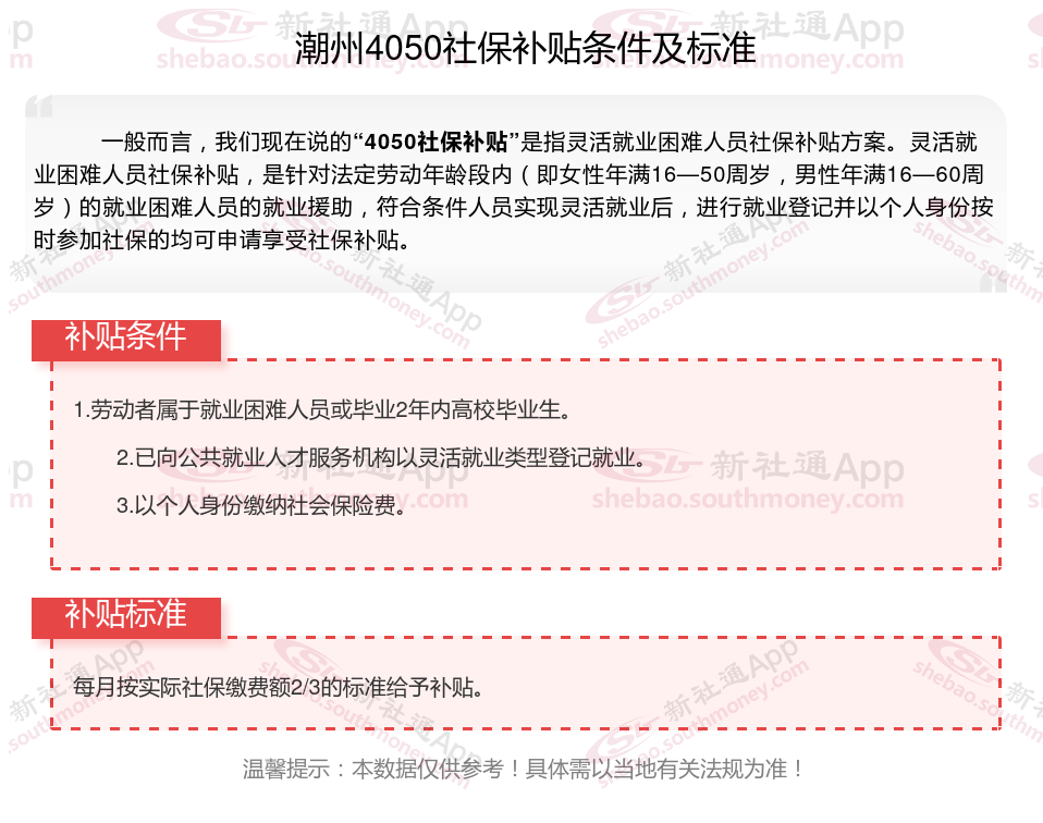 一、潮州4050社保补贴标准及条件2025年最新消息