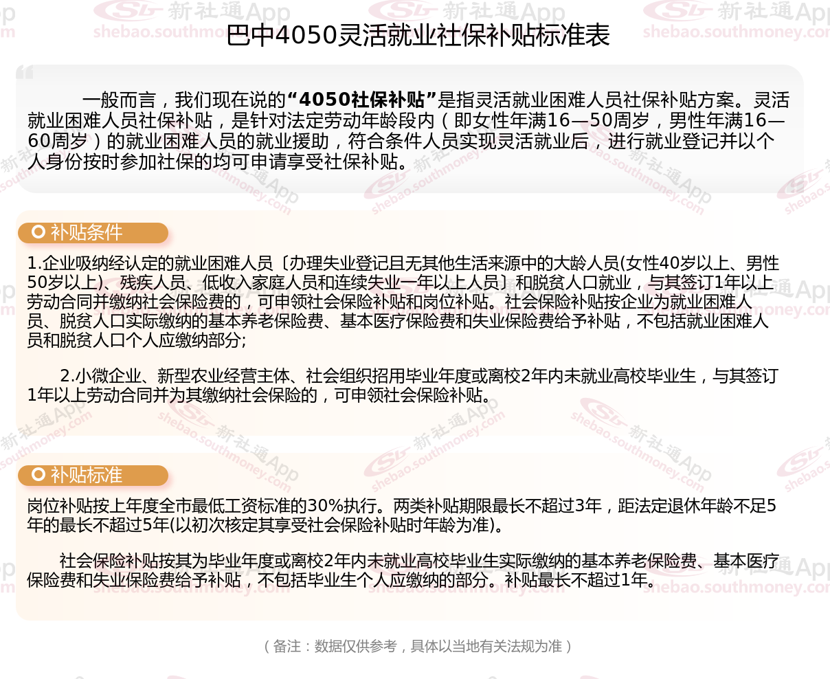 一、巴中4050社保补贴标准及条件2025年最新消息