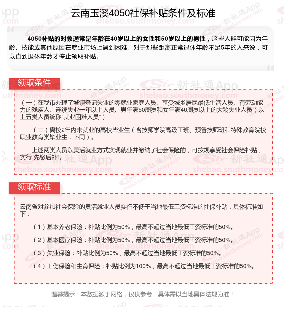 一、云南玉溪4050社保补贴标准是什么?附条件