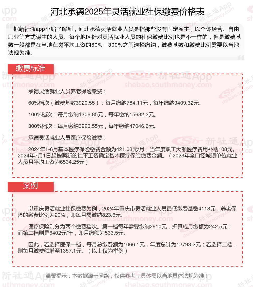 以上就是新社通小编带来河北承德灵活就业社保缴费知识,内容供参考,希望对你有帮助,欢迎关注/下载新社通APP解锁更多社保专业资讯。