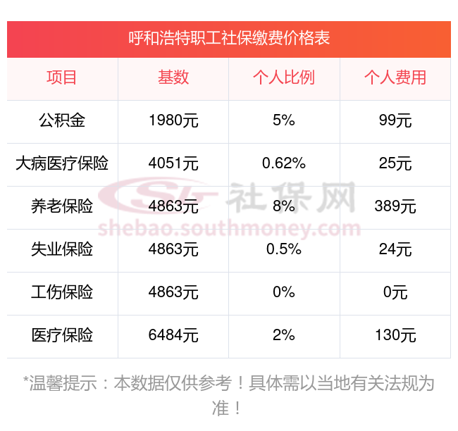 和社保君一起来了解下:呼和浩特社保缴费比例是多少?2024-2025年呼和浩特社保费用明细参考,新社通app-社保缴费查询工具提供的最新数据如下: