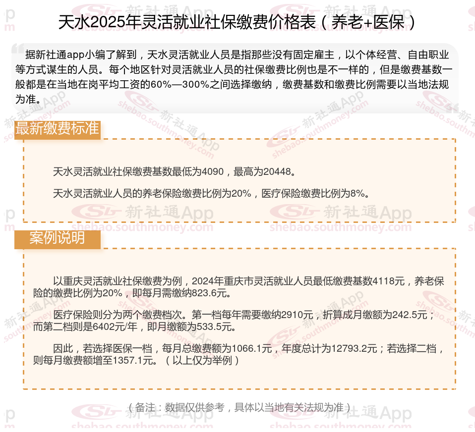 二、2025年天水灵活就业社保缴费基数及比例最新消息