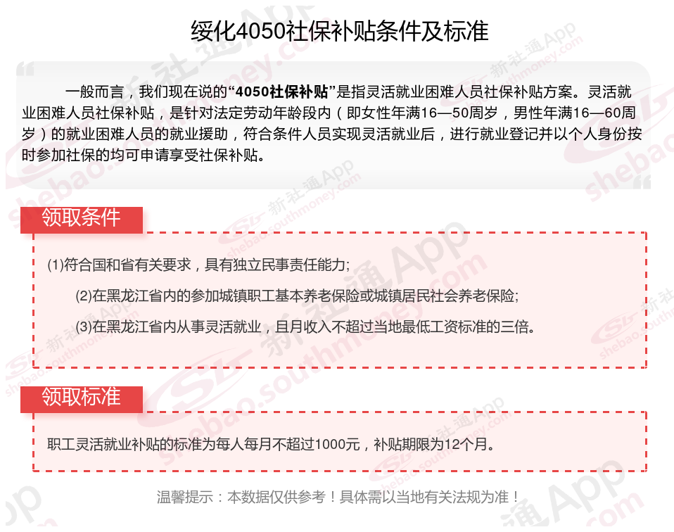 二、2025年绥化4050社保补贴标准,最新领取条件来了