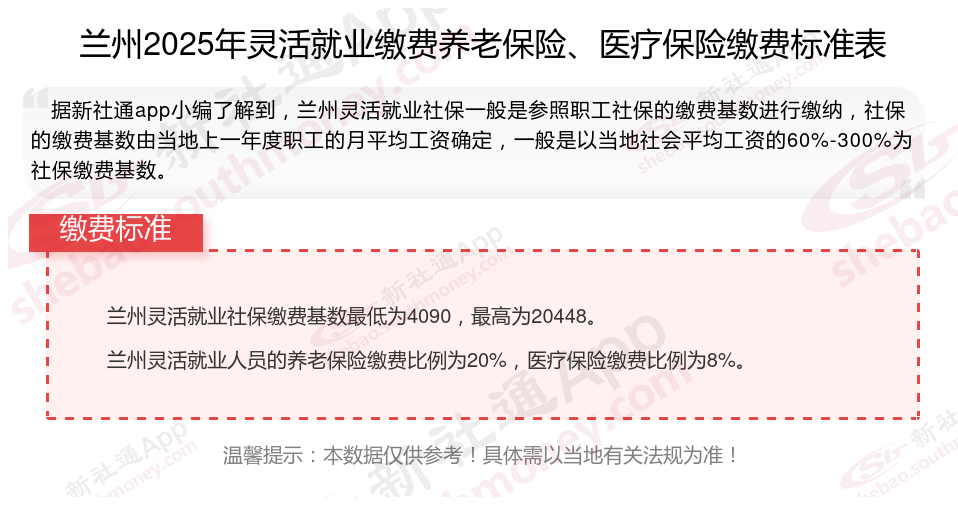 据新社通app数据显示,兰州养老保险缴费基数2024-2025年最新标准如下: