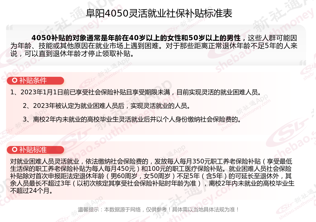 2025阜阳灵活就业4050社保补贴是一项面向特定年龄段的就业困难人群的社会保险补贴。