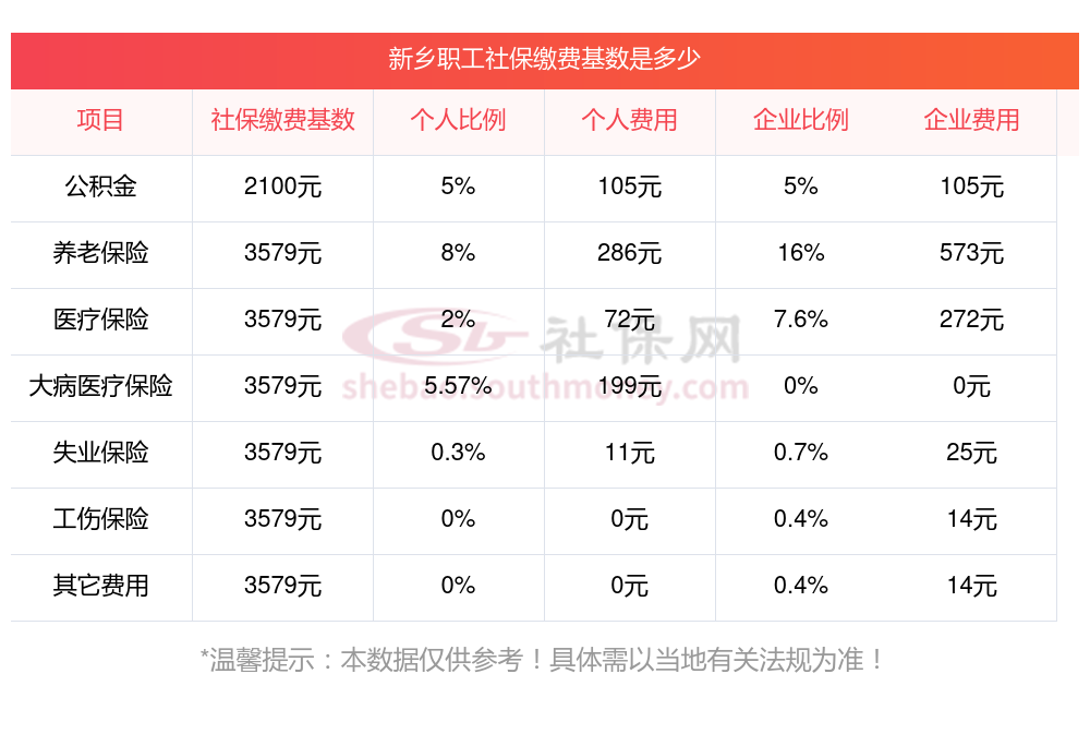 2025年新乡社保缴纳比例,2025年新乡社保缴费多少钱?下表是2024-2025年新乡社保费用明细参考,新社通app-社保缴费查询工具提供的最新数据如下: