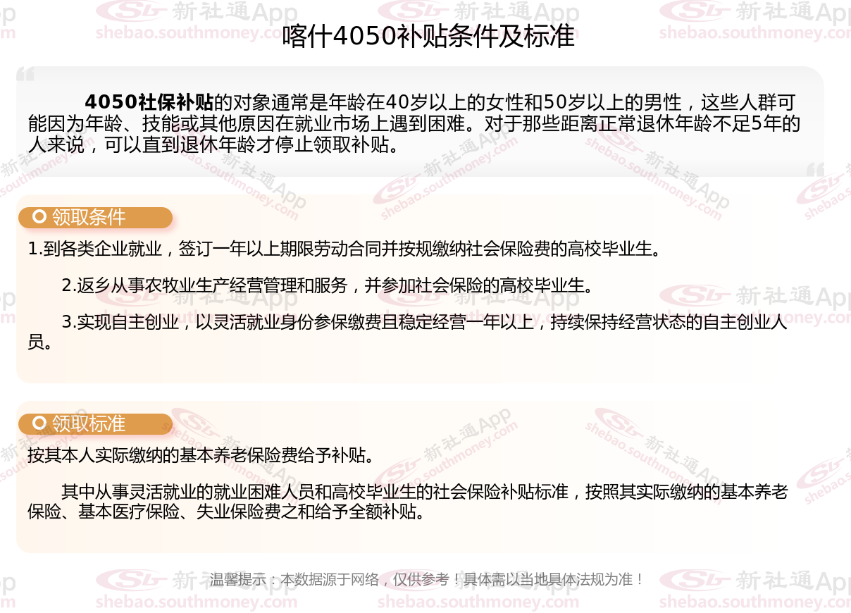 二、2025年喀什4050社保补贴标准及条件是什么?