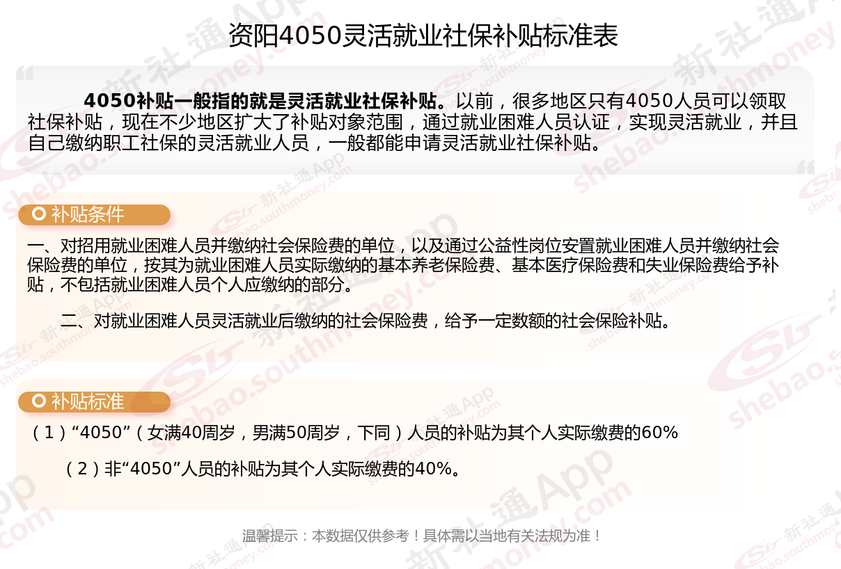 二、资阳灵活就业4050社保补贴标准2025年(4050社保条件是什么)