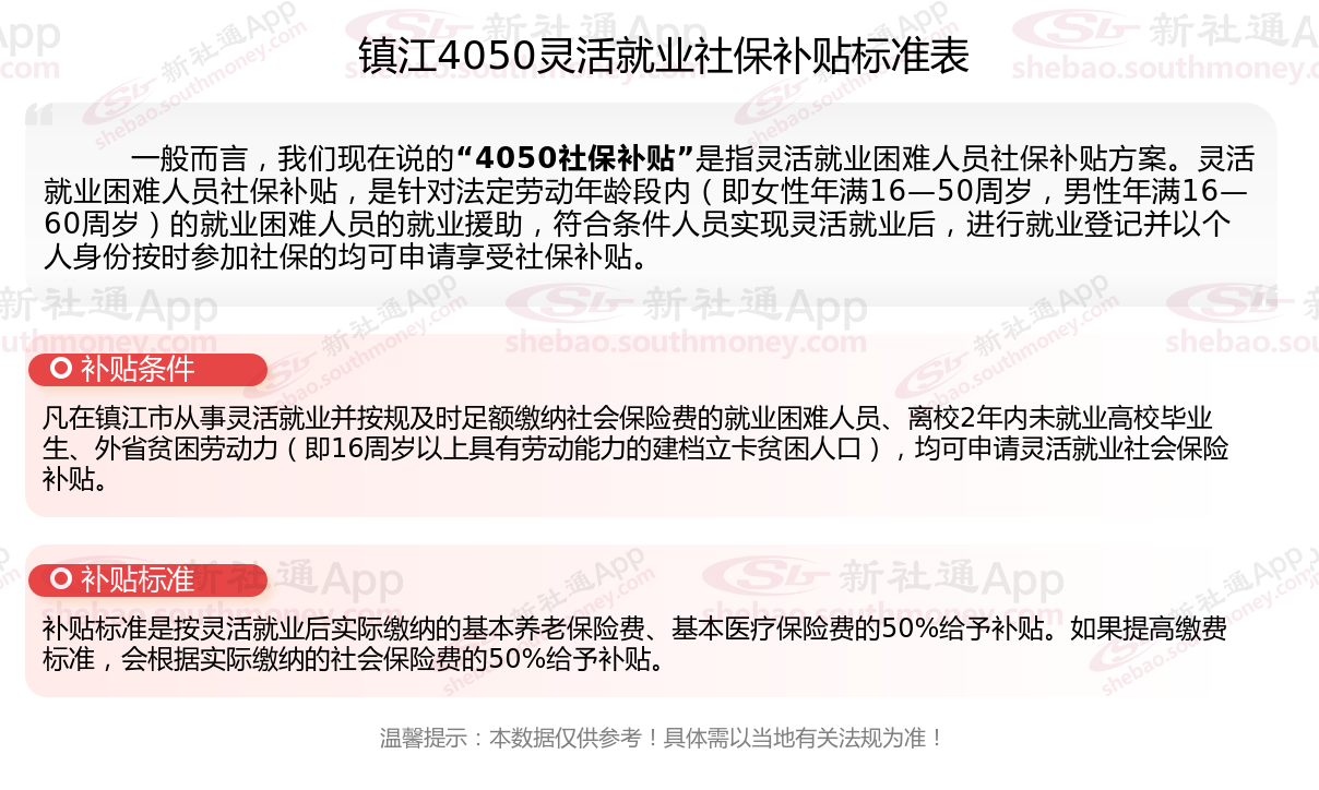 二、2025年镇江灵活就业4050社保补贴标准及条件是什么?来了解一下