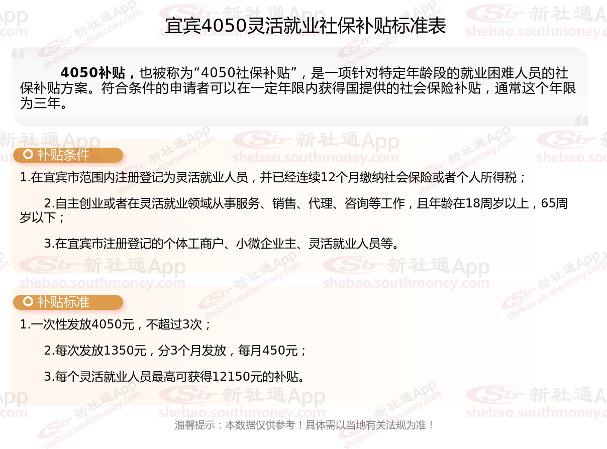 二、宜宾4050社保补贴标准及条件2025年最新消息