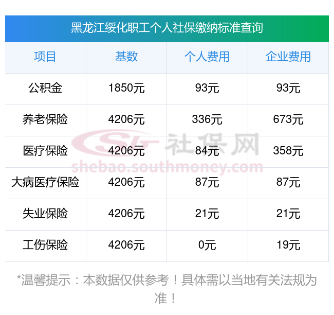黑龙江绥化的社保缴费情况,依据2025年最新的缴费标准,我们可以详细地进行如下说明。这些标准是根据新社通app-社保缴费查询工具提供的数据整理得出的: