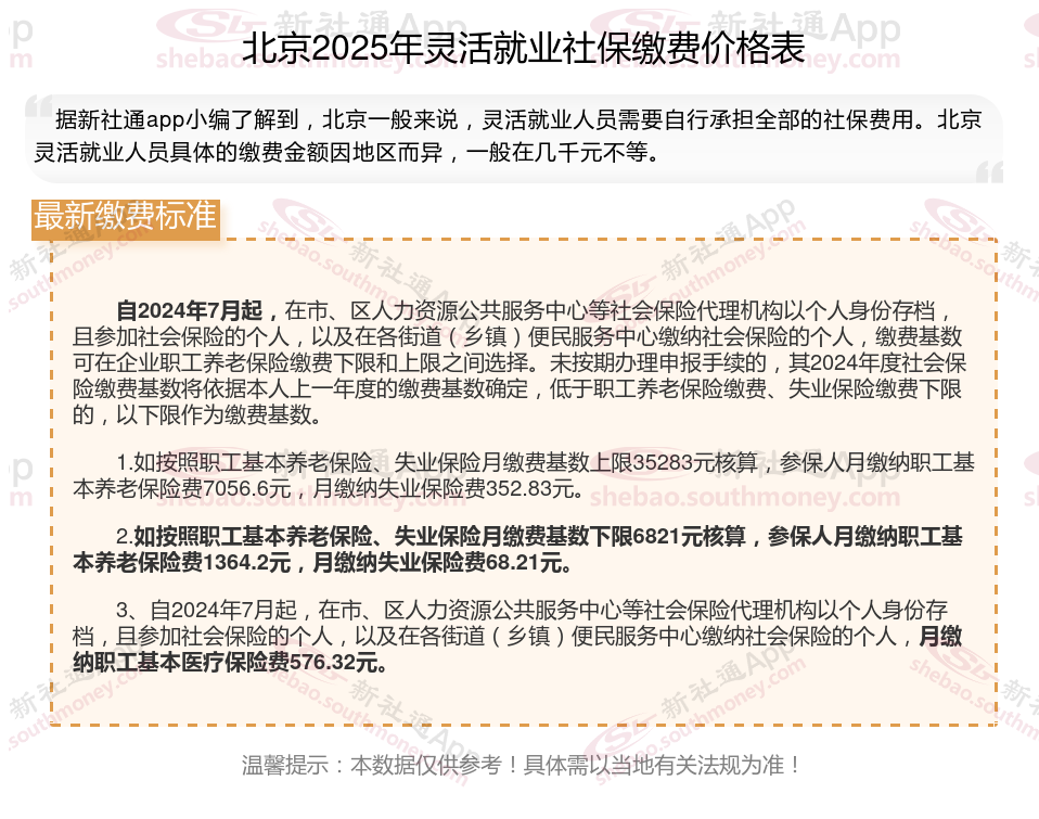 一、2025年北京灵活就业社保缴费标准公布啦 北京灵活就业社保多少钱一个月?