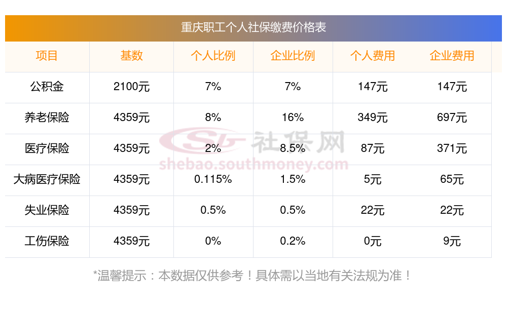 2025年重庆社保缴费价格标准是多少,2025年重庆社保缴费多少钱?下表是2025年重庆社保费用明细参考,新社通app-社保缴费查询工具提供的最新数据如下: