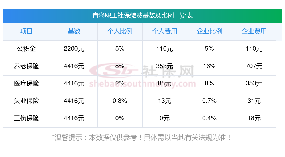 青岛社保缴纳比例公司和个人按照以下方式计算?: