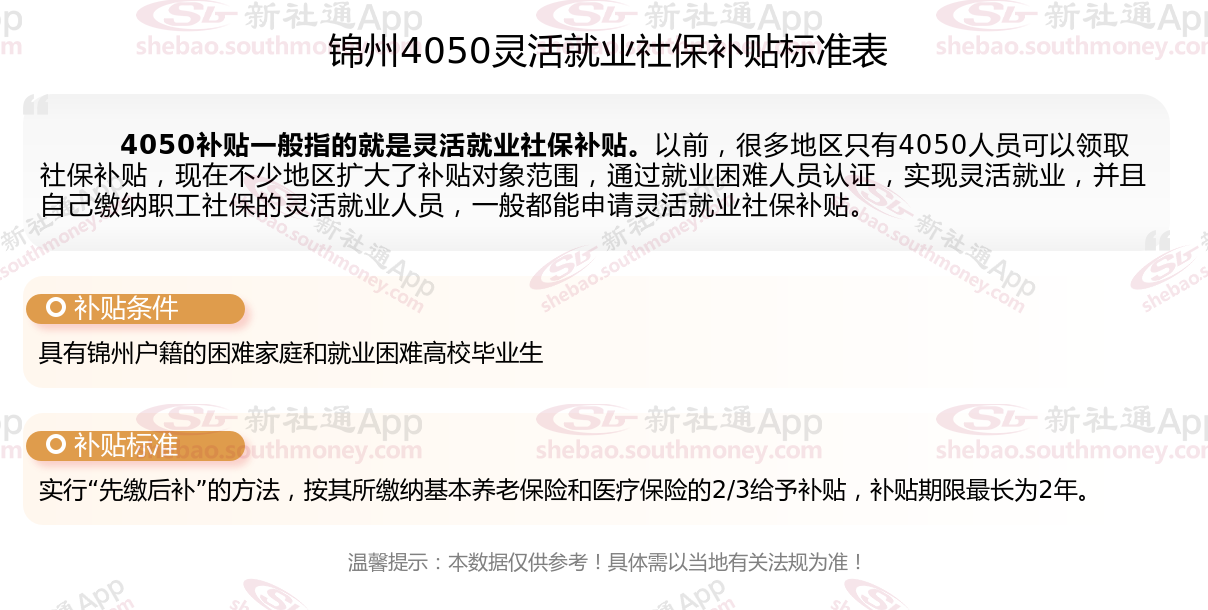 二、2025年锦州灵活就业4050社保补贴标准及条件是什么?来了解一下