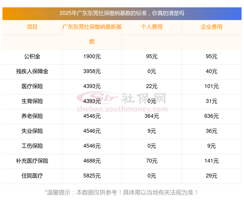 广东东莞缴费社保比例一览 社保公司和个人各交多少?下表是2024-2025年广东东莞社保费用明细参考,新社通app-社保缴费查询工具提供的最新数据如下: