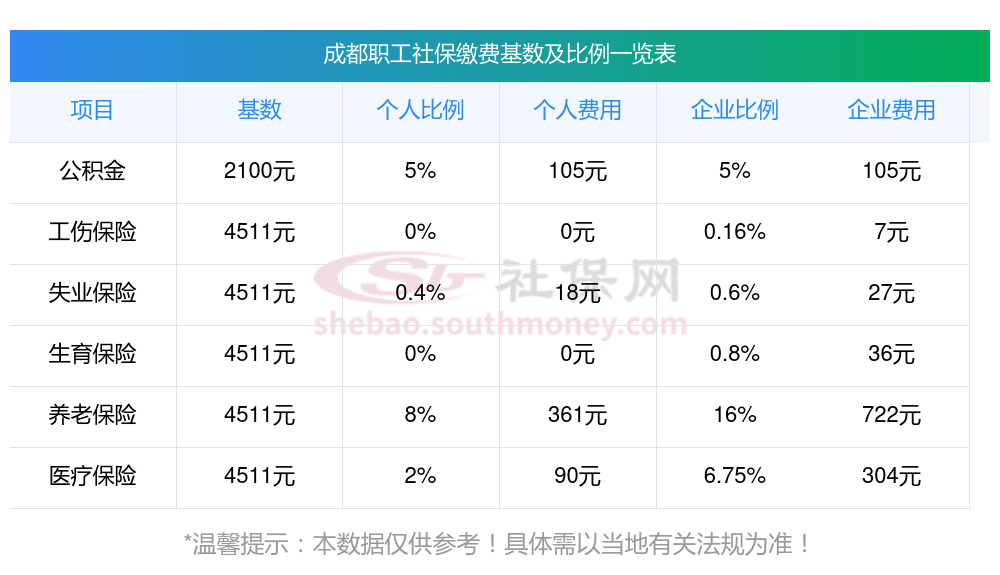 2025年成都社保缴费多少钱?下表是2024-2025年成都社保费用明细参考,新社通app-社保缴费查询工具提供的最新数据如下: