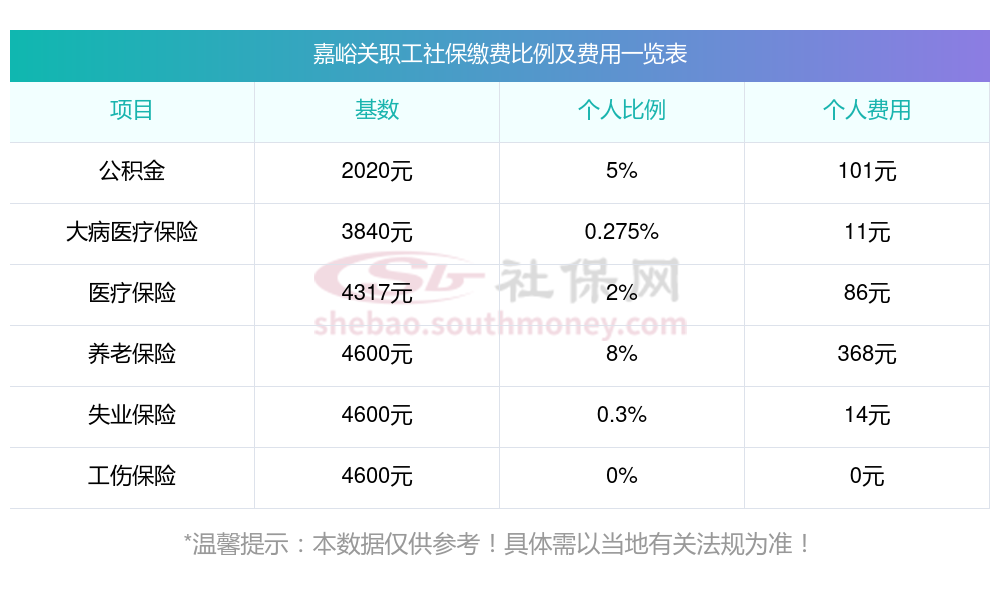 2025年嘉峪关社保缴费标准是多少,农村社保要交多少年才不交 下表是2025年嘉峪关社保费用明细参考,新社通app-社保缴费查询工具提供的最新数据如下: