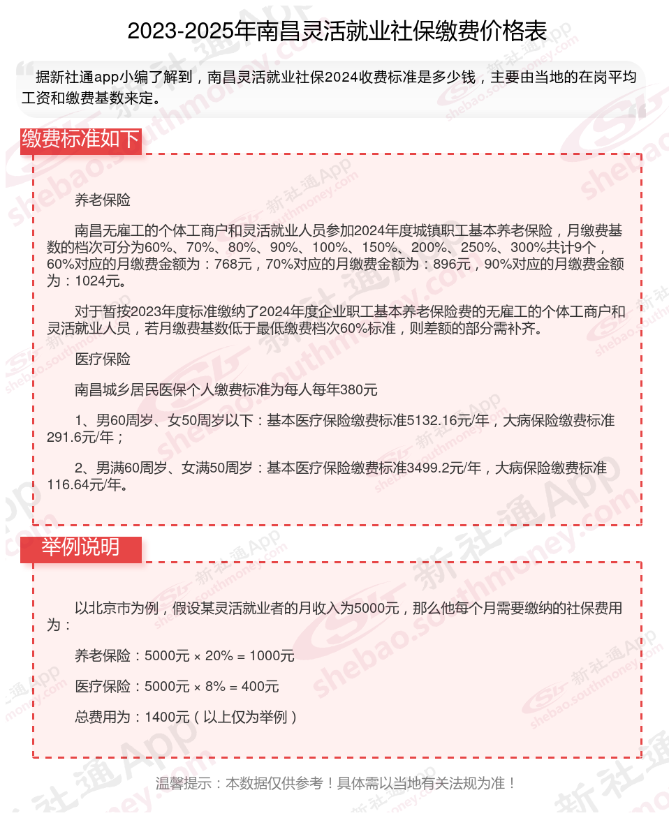 据新社通app数据显示,2024-2025年南昌灵活就业人员养老保险的缴费标准: