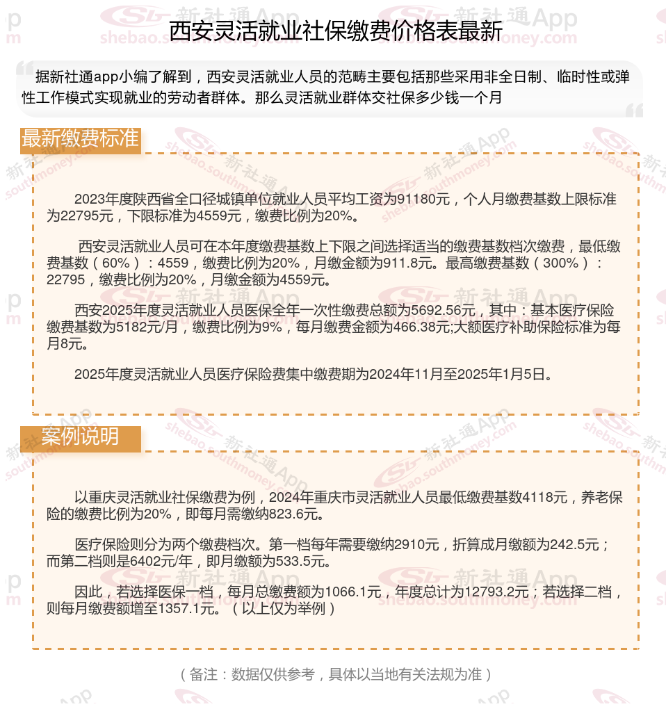 2025年西安灵活就业缴费标准个人交多少呢, 个人是可以自己交社保的吗?根据新社通app-社保缴费查询工具提供的最新数据如下: