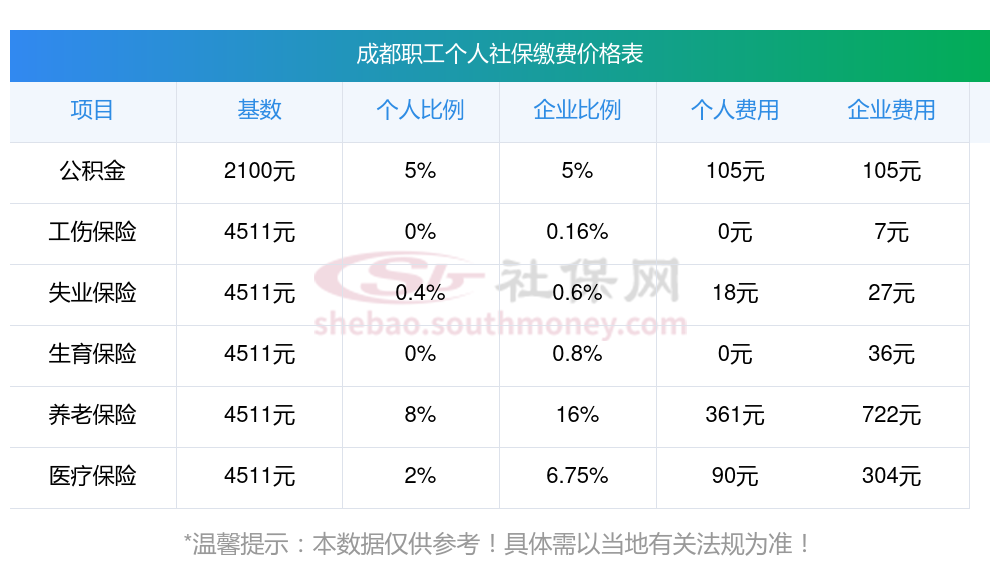 2025年成都社保缴费多少钱?下表是2023-2024年成都社保费用明细参考,新社通app-社保缴费查询工具提供的最新数据如下: