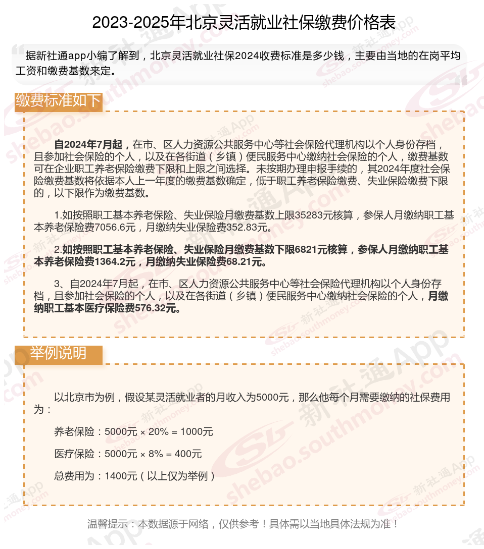据新社通app数据显示,2024-2025年北京灵活就业人员养老保险的缴费标准: