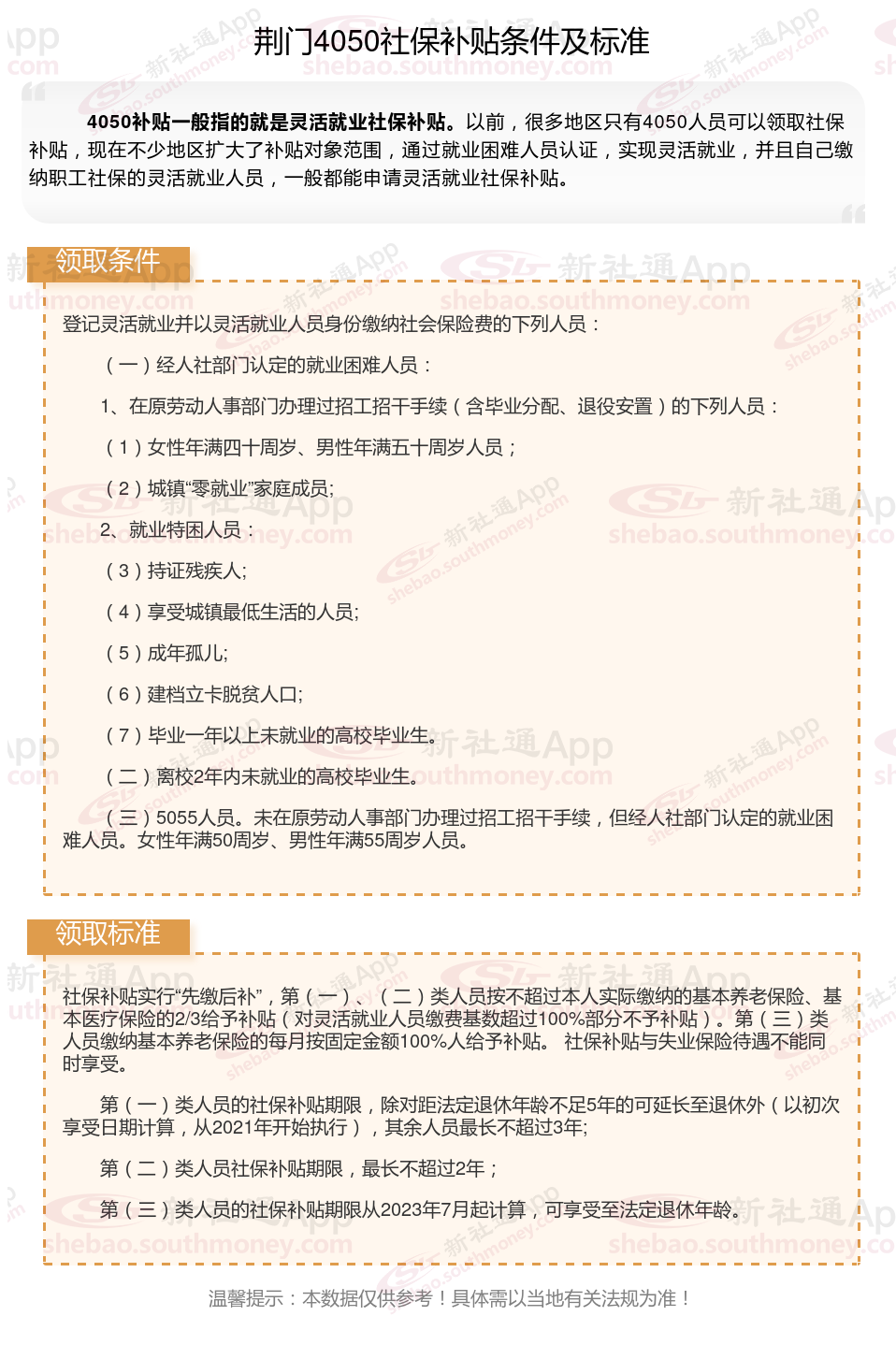 2025荆门灵活就业4050社保补贴是一项面向特定年龄段的就业困难人群的社会保险补贴。
