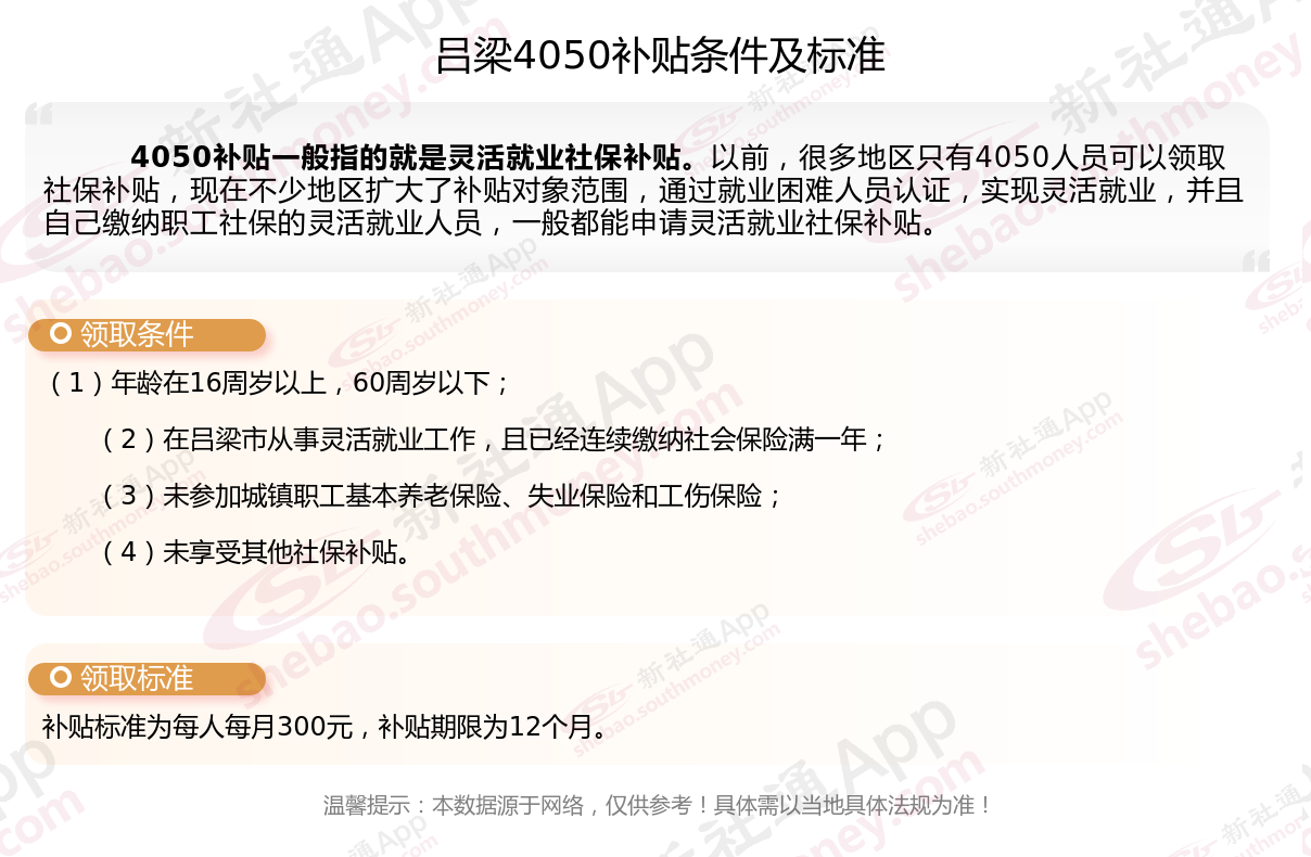以上就是吕梁4050灵活就业社保补贴的相关内容,欢迎关注新社通/下载新社通APP了解更多五险一金专业资讯。