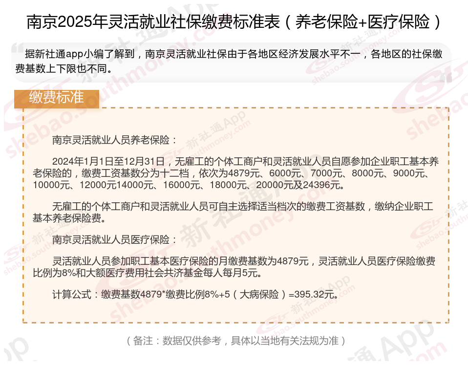 据新社通app数据显示,南京企业灵活就业养老保险的缴费基数为:4494元。