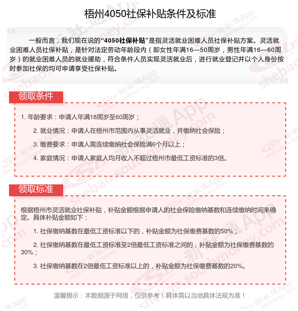 一、2025年梧州灵活就业4050社保补贴标准及条件是什么