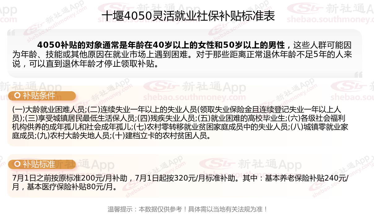 以上就是十堰4050灵活就业社保补贴的相关内容,欢迎关注新社通/下载新社通APP了解更多五险一金专业资讯。