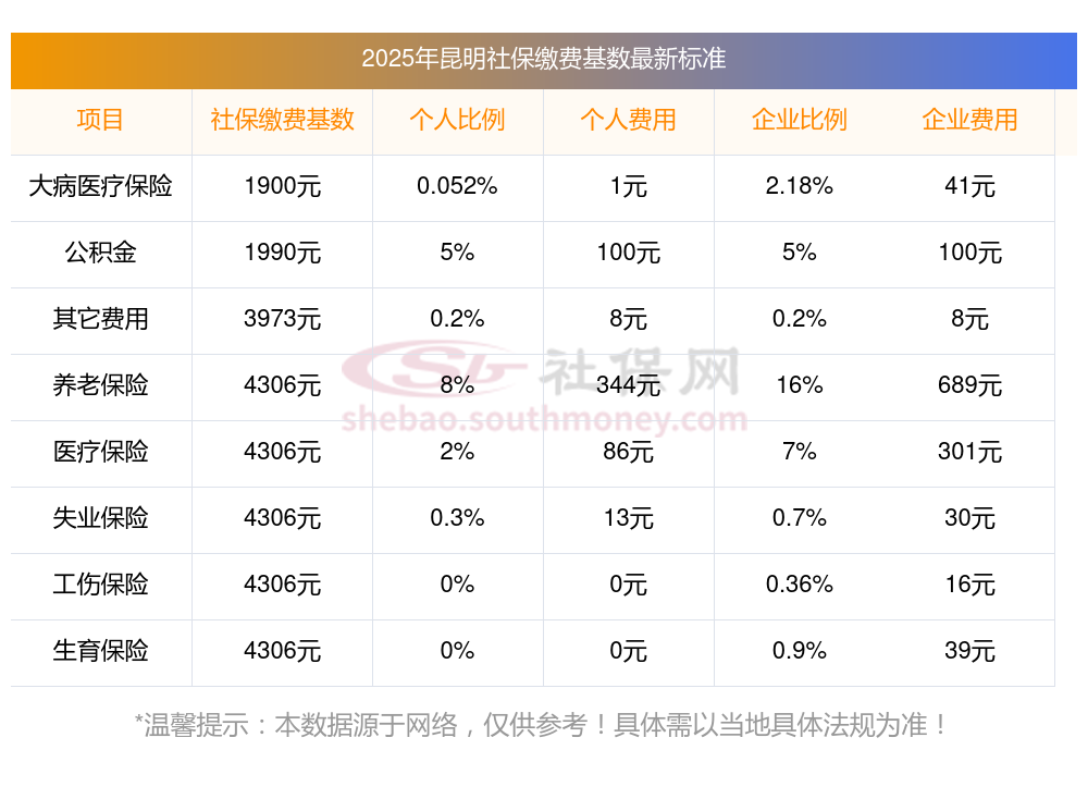 以下是对昆明2025年社保缴费情况的另一个详细说明,基于最新的缴费标准: