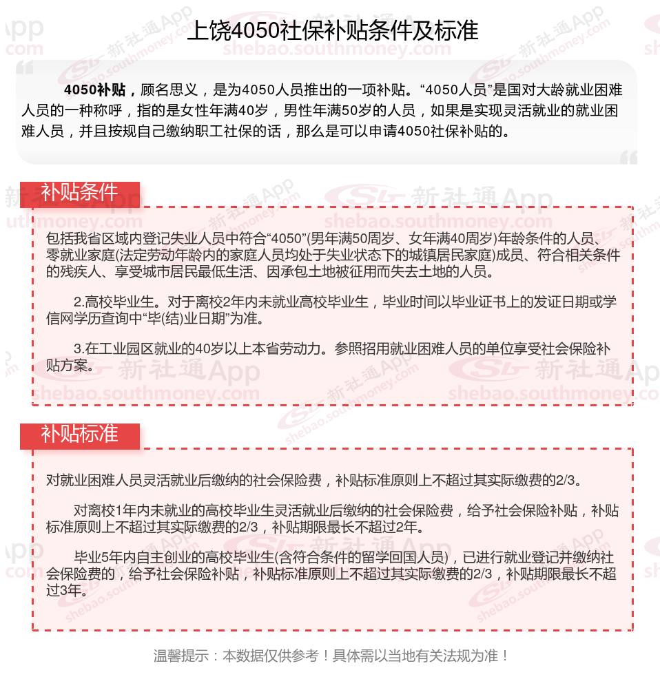 2025上饶4050补贴主要针对的是年龄在40岁以上的女性和50岁以上的男性,这些人群通常因为年龄较大而面临就业困难。