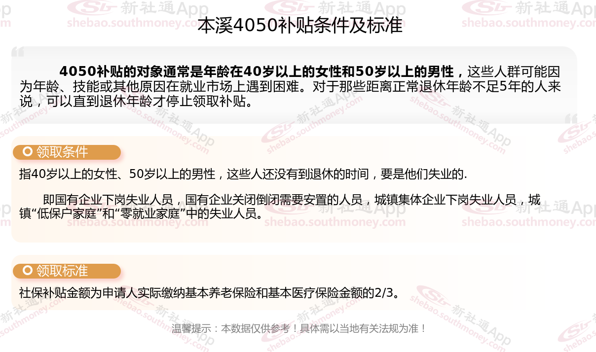二、2025年本溪4050社保补贴多少钱?4050社保补贴领取条件什么?